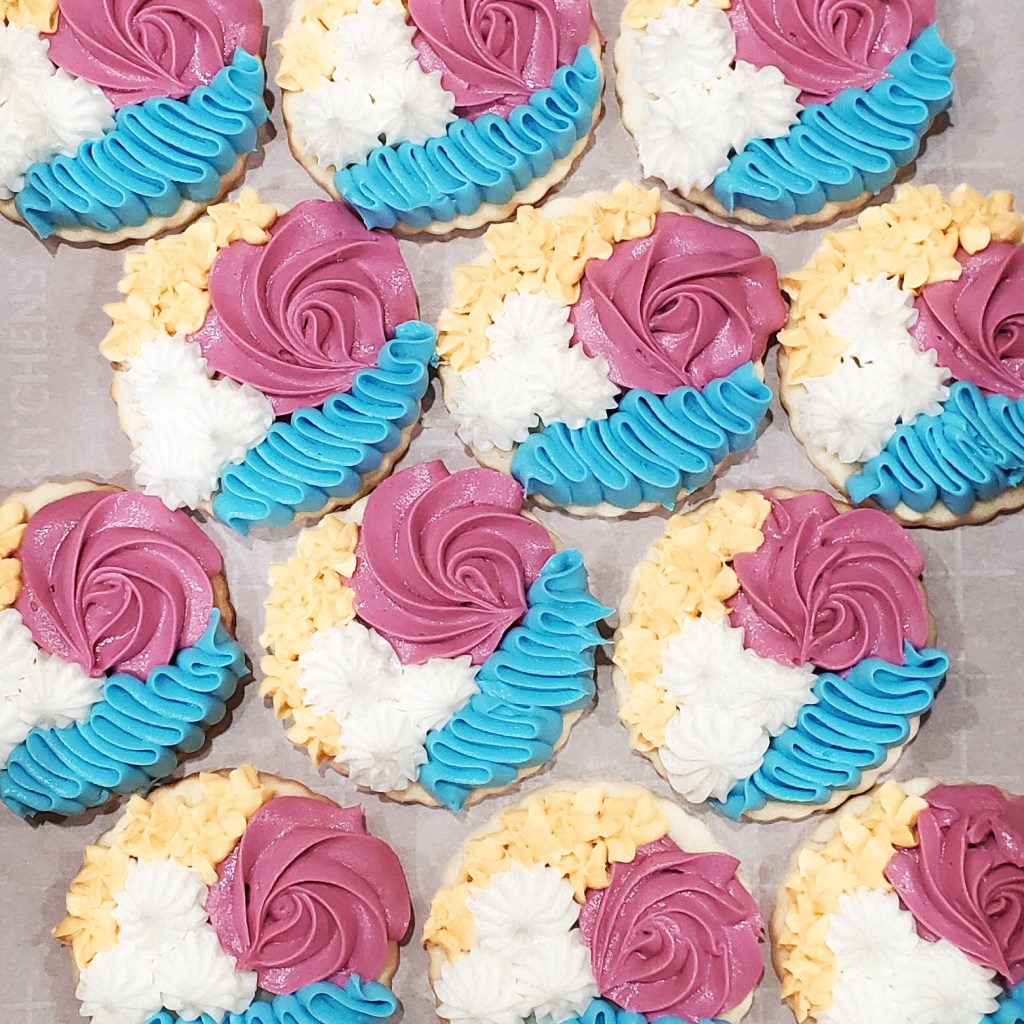 If you ever just want some delicious sugar cookies, these are the perfect solution! Featuring American buttercream in pastel colors, these will be sure to delight.