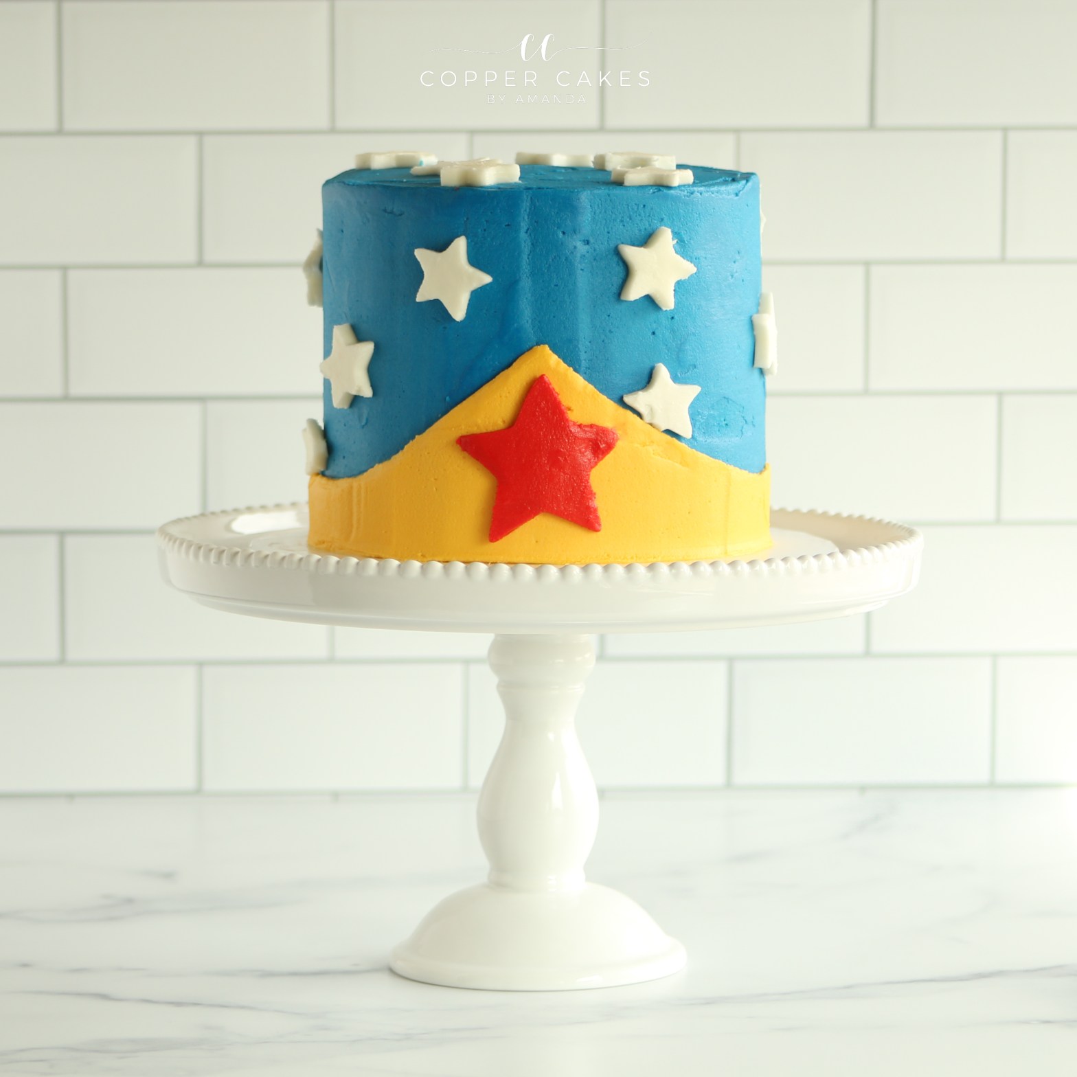 This Cocomelon cake is an 8 inch vanilla cake covered in Swiss Meringue Buttercream and features just a couple of fondant decorations.